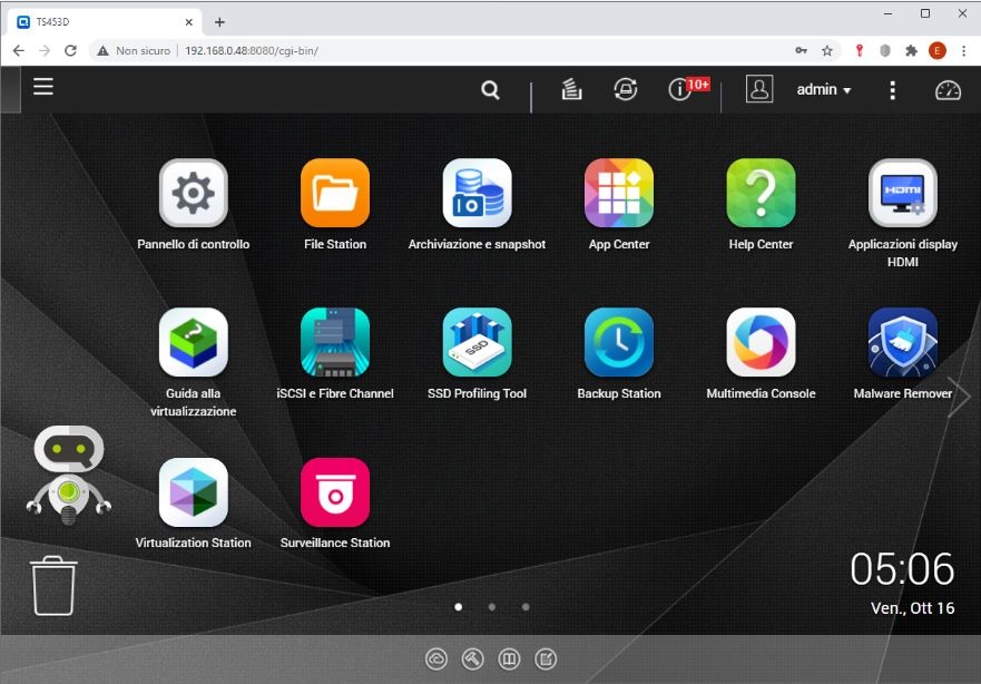 http://install.qnap.com attendere che vengano identificati i dispositivi QNAP non inizializzati, premere il pulsante relativo al TS-453D e seguire una semplice procedura guidata che installa il sistema operativo QTS giunto oggi alla release 4.4.3.