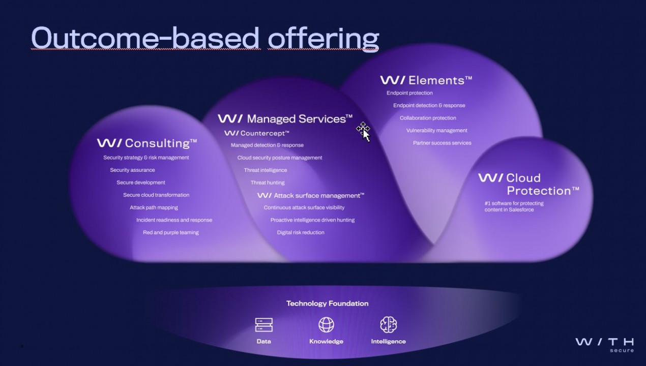 La nuova avventura aziendale è stata spiegata in apertura di evento da Carmen Palumbo, Country Sales Manager, WithSecure Italy: una storia solida, lunga 34 anni che oggi abbraccia gli scenari moderni di cyber-security. Un annuncio fatto lo scorso 22 marzo dal management aziendale di F-Secure Business, secondo cui F-Secure Corporation ha diviso le due componenti portanti del proprio business – consumer ed enterprise - in due realtà indipendenti, ciascuna focalizzata sul proprio core business: da una parte F-Secure focalizzata sulla componente più consumer e dall’altra WithSecure sul mercato corporate e sui nuovi fronti innovativi della cyber-sicurezza, guardando a innovativi modelli operativi come il cloud computing e l’as-a-service, prediligendo quindi l’erogazione di servizi attraverso un approccio consulenziale e aperto in un disegno di ecosistema.