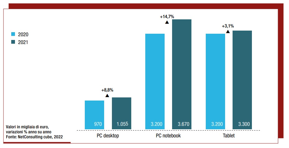 C’è un comparto che, negli ultimi due anni, ha (quasi) tenuto da solo in piedi l’intero mercato IT italiano. Si tratta delle forniture hardware, laptop e tablet in particolare ma non solo, per cui si è registrata una forsennata corsa all’acquisto a partire dal lockdown del 2020.