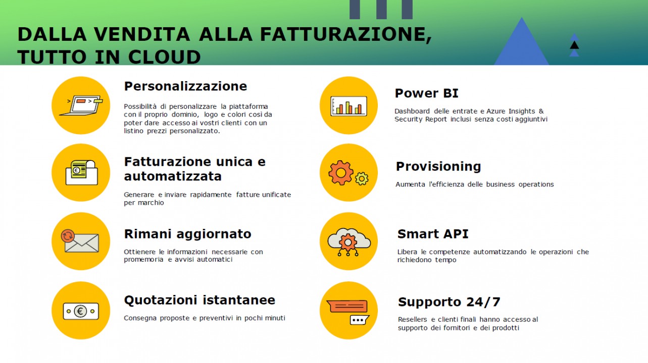 Per intendersi: una ‘one stop Cloud platform’ che mette al centro lo ‘Unique User’, in grado di integrarsi con il webshop transazionale, offrendo provisioning automatico, un’elevata user experience, fatturazione unica e automatizzata, analisi del comportamento del cliente tramite PowerBI, mettendo tutto in sicurezza con strumenti di multi-factor authentication, proteggendo altresì dalle frodi grazie ad Azure fraud protection.