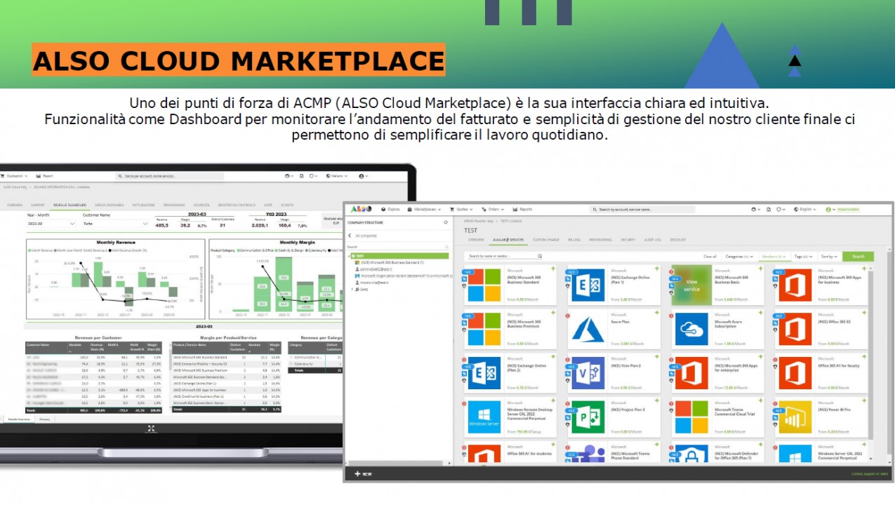L’elemento caratterizzante la proposta aziendale, destinato a consentire ad ALSO Italia di affermarsi sul mercato italiano, distinguendosi dagli altri operatori della distribuzione, è oggi rappresentato da ALSO Cloud Marketplace (ACMP), il punto di riferimento per l’Everything as a Service, nella sua accezione più completa per il distributore e i partner di canale.