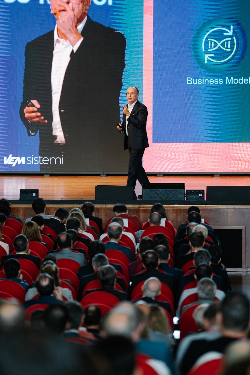 spiga infatti Stefano Bossi, numero uno del System Integrator mentre, a metà giornata nel cuore dell’auditorium Paganini di Parma, guarda sfilare soddisfatto i quasi 500 presenti tra clienti a partner – bisogna incarnarla, sentirla dentro e avere il coraggio di rappresentarla». Detto fatto, manco a dirlo nel 2020, Bossi taglierà con ogni probabilità il nastro della nuova sede di Forlì, studiata e progettata secondo i più recenti criteri di sostenibilità e smart working, la “sua” azienda continua a investire buona parte dei propri averi in formazione e assunzione di talenti under 25 e il fatturato, in costante crescita ringrazia da tempo. Detto fatto perché Vem Sistemi è una azienda così e VemFWD2020 è un evento così. Una piattaforma di incontro completamente protesa in avanti ma con le gambe solide e ben piantate per terra, dove nasce il business, dove nascono le idee, le imprese, i manager con le loro esigenze, criticità e talenti. «L’Emilia Romagna del resto vanta uno dei PIL più alti in Italia» precisa sorridendo il manager.