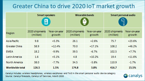 "I vendor di dispositivi indossabili che possono ancora spedire on line i dispositivi stanno orientando le loro campagne marketing in questa direzione esaltando i vantaggi chiave di questi prodotti, in particolare l’utilità nelle video-chiamate. I consumatori infatti mostrano interesse verso dispositivi audio wireless flessibili per attività lavorative, di studio e intrattenimento. Canalys prevede che nel 2020 le spedizioni dispositivi smart personal audio aumenteranno del 15,5%, confermandosi come il segmento IoT consumer a crescita più rapida”, ha dichiarato