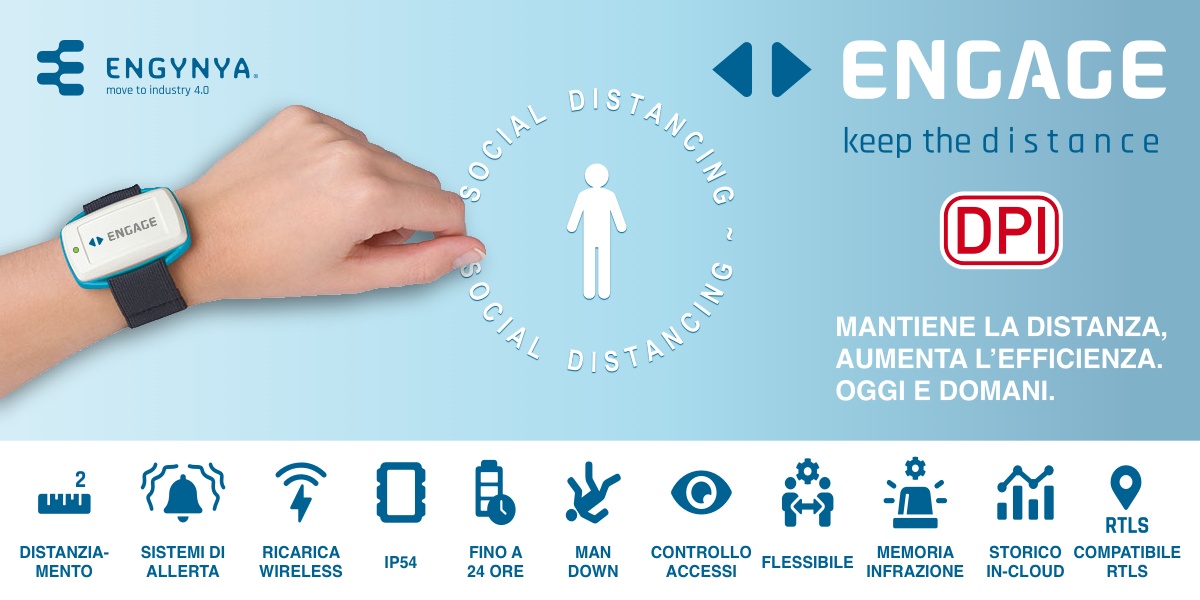 Il Dispositivo di Protezione Individuale (DPI) Engage, basato su tecnologia ultra-wide band, è ideale per garantire una riapertura sicura alle aziende e alle realtà produttive
