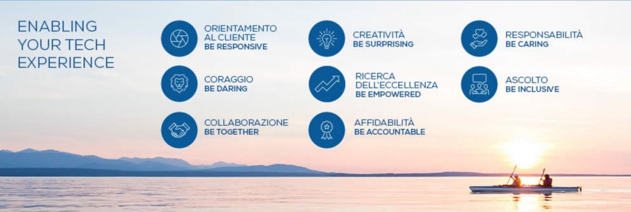 Un nuovo payoff L’obiettivo del Gruppo è quindi favorire la fruizione allargata di ogni tecnologia con una distribuzione efficiente su tutti i canali di contatto con consumatori e organizzazioni, sviluppare strumenti operativi e finanziari efficaci e innovativi per affrontare l’evoluzione dei mercati ed essere punto di riferimento nel mercato della tecnologia grazie alle migliori competenze professionali. Il tutto è ben espresso dal nuovo Payoff, ‘Enabling your tech experience’, che sintetizza l’evoluzione dell’azienda in un vero e proprio hub di servizi tecnologici che abilita e semplifica l’utilizzo della tecnologia. Alessandro Cattani, Amministratore Delegato di Esprinet I valori aziendali Affidabilità, ricerca dell’eccellenza, orientamento al cliente, collaborazione, coraggio, creatività, responsabilità e ascolto sono i valori ed i comportamenti adottati dall’azienda, per rendere più efficace l’impegno quotidiano verso il raggiungimento degli scopi indicati nella vision e nella mission.