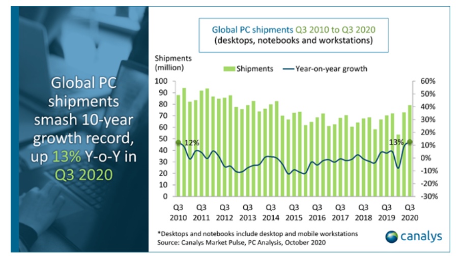 l’analista di Canalys Ishan Dutt, sottolineando come la crescita del terzo trimestre sia anche frutto degli interventi finanziari promossi da molti governi in ambito scolastico con l’obiettivo di permettere a tutti gli studenti la didattica a distanza.