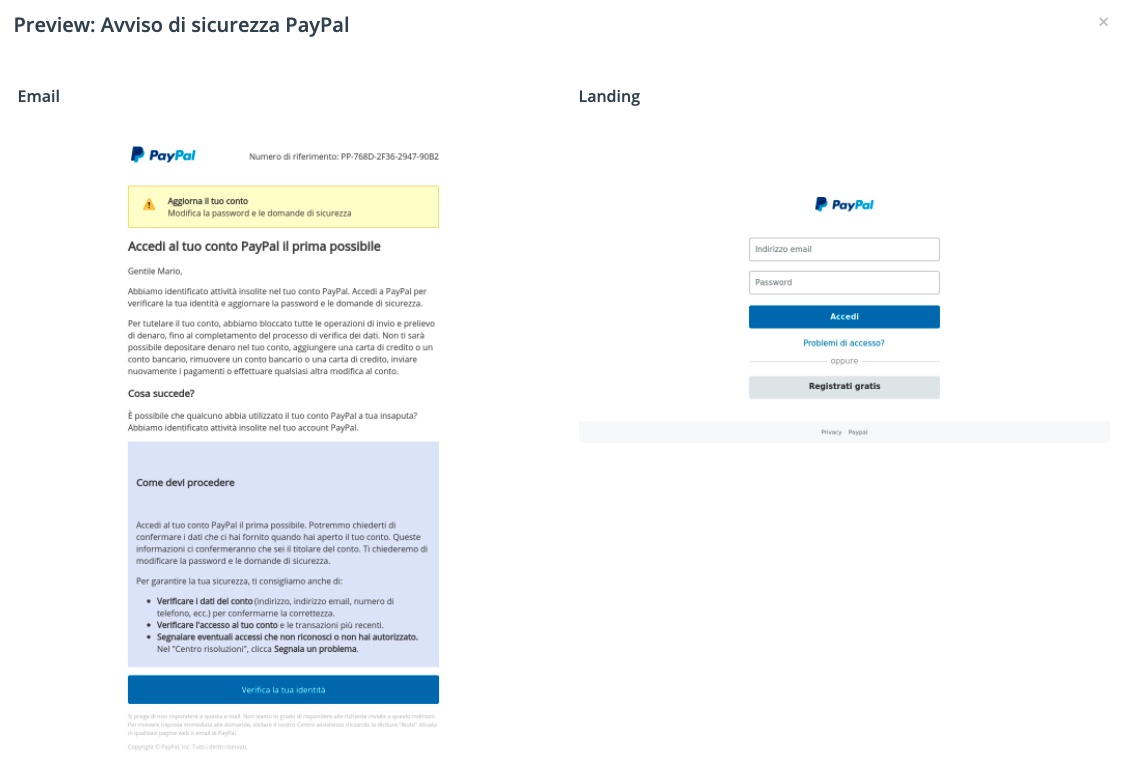 Il reporting dettagliato permette, inoltre, di tracciare le email che sono state aperte, i link che sono stati cliccati e le informazioni che sono state inserite nei form della landing page fasulla. In questo modo sarà possibile avere statistiche di crescita del livello di awareness aziendale e identificare dipendenti e organizzazioni più vulnerabili, così da poter dedicare tempo alla loro formazione e sensibilizzazione.