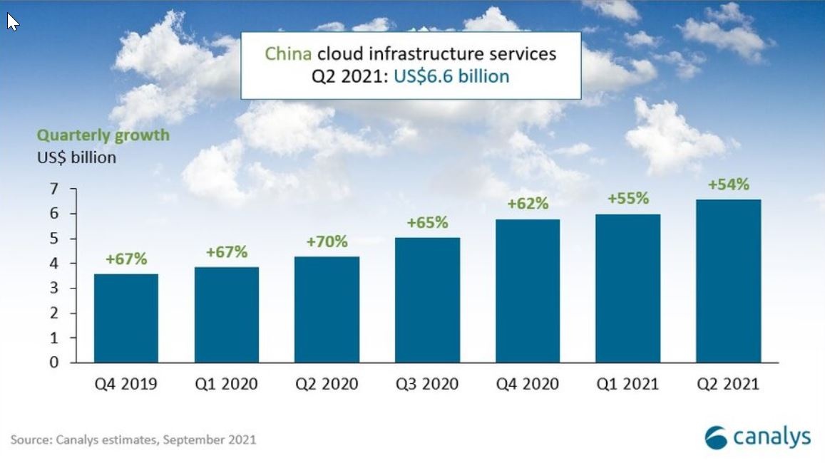 “Le aziende tecnologiche cinesi hanno potuto contare sul mercato locale, soprattutto quando l'accesso ai mercati occidentali più redditizi era bloccato. Ma negli ultimi nove mesi le crescenti pressioni normative nazionali hanno in un certo senso ostacolato le aziende che hanno visto crescere le loro attività cloud negli ultimi anni in modo consistente. Queste pressioni si stanno estendendo a un'ampia gamma di aziende tecnologiche online, dalle piattaforme di education alle app di ride sharing ". Nonostante le pressioni,