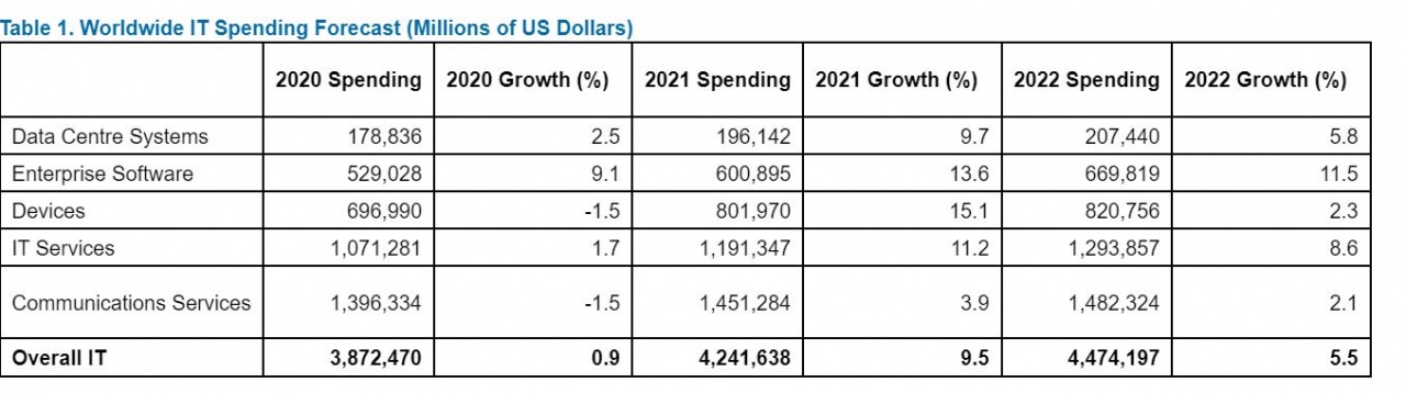 L'analista di mercato anticipa le prospettive per il mercato IT globale per l'anno che verrà. Sarà il software enterprise a guidare la classifica per la crescita più elevata nel 2022 all'11,5% (tabella 1), trainata dalla spesa per il software infrastrutturale