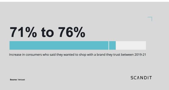 I clienti che affermano di voler comprare da un brand di cui si fidano sono passati dal 71% al 76%, nel periodo 2019-2021