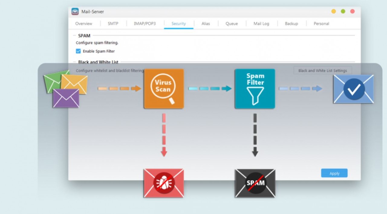 Tra i nuovi servizi che i Nas Asustor offrono oggi, uno dei più apprezzati è la possibilità di ospitare un Mail Server, in grado di gestire un numero illimitato di utenti senza la necessità di sostenere costi per licenze aggiuntivi e consente, tra le altre cose, di scaricare diverse caselle mail su unico account, utilizzare il proprio server per gestire la posta in entrata e uscita, consultare facilmente i log per verificare l’avvenuta consegna delle mail ai server dei destinatari ed, infine, evitare che le mail all’interno del proprio dominio transitino attraverso server esterni, occupando inutilmente banda. Nonostante i vantaggi che la gestione di un mail server self-managed garantisce, la complessità della configurazione iniziale e la necessità di disporre di un hardware in grado di assicurare elevata affidabilità e di rimanere attivo 24/7, ha spesso spinto apreferire la possibilità di appoggiarsi alle infrastrutture dei provider, ma i Nas Asustor permettono oggi di superare agilmente queste difficoltà.