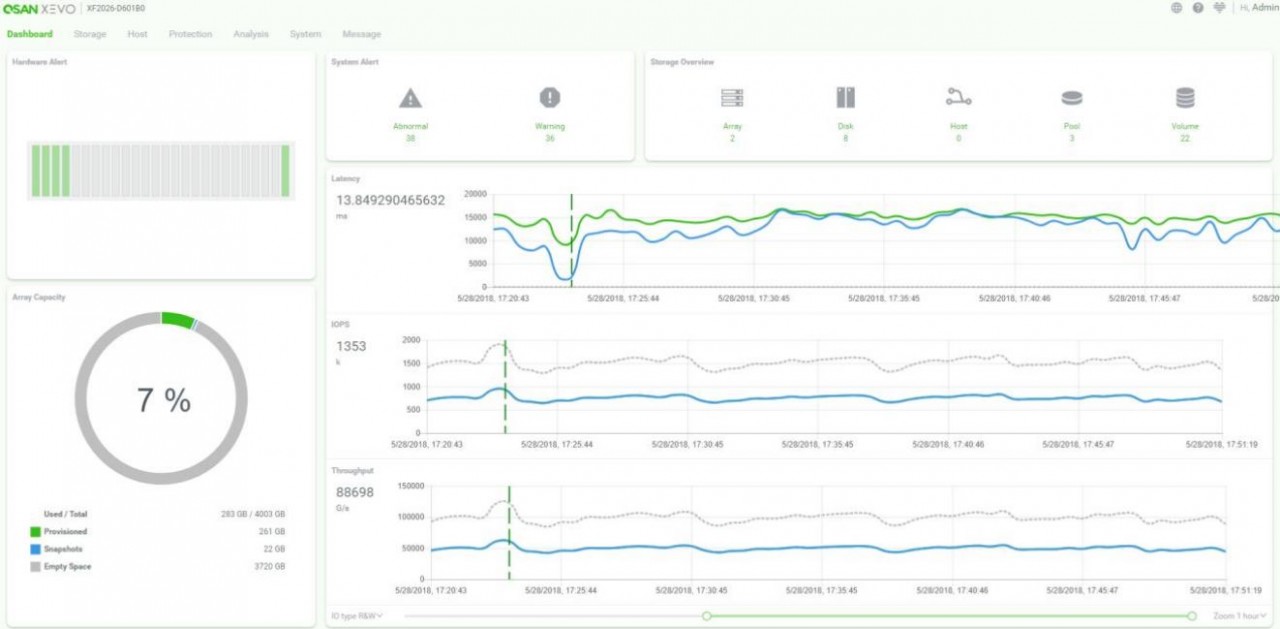 In tutta la serie XS3300 la gestione dello storage è affidata al sistema operativo XEVO di QSAN. Dispone di una interfaccia utente intuitiva, che consente di risparmiare molto tempo durante il provisioning dello storage. XEVO offre anche funzionalità di archiviazione classiche, come protezione completa a livello RAID, RAID EE con ripristino rapido, thin provisioning, cache SSD e tiering automatico, tra gli altri. Una dashboard con ampie funzioni di monitoraggio consente agli amministratori di sistema di analizzare e monitorare lo stato dello storage in tempo reale.