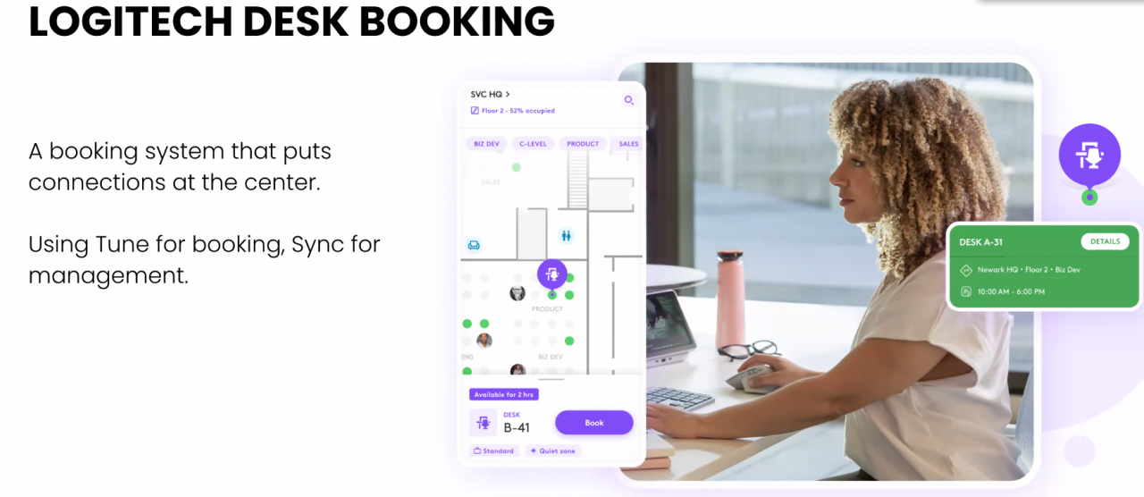 L’altra novità di Logitech è Desk Booking Solution, un software di prenotazione delle scrivanie che offre ai dipendenti che lavorano in modalità ibrida una migliore esperienza di hotdesking e una maggiore capacità di gestire le postazioni di lavoro condivise in azienda. La soluzione è disponibile sulla nuova Logi Dock Flex, creata appositamente per l’uso di scrivanie condivise.