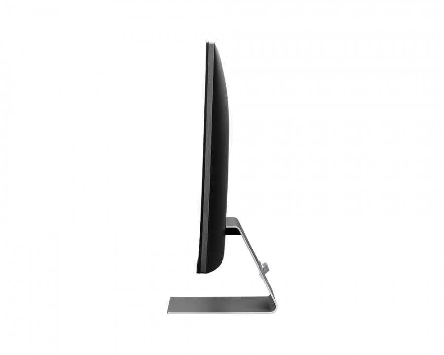 Si tratta di un modello ultrasottile senza cornice, con uno spessore di poco superiore a un centimetro e una base in metallo che occupa pochissimo spazio sulla scrivania. Design e qualità vanno di pari passo, dato che il pannello è un modello IPS che vanta fra i dati tecnici la capacità di coprire una gamma colori pari al 95% dello spettro Adobe RGB, il 99% di DCI-P3 e il 139% di sRGB. In altre parole, significa che è in grado di riprodurre foto e video con una qualità cromatica molto vicina all’originale. Colori e modalità di visualizzazione si possono personalizzare mediante il menu Display Kit, controllabile con quattro pulsanti a sfioro installati in corrispondenza dell’angolo in basso a destra.