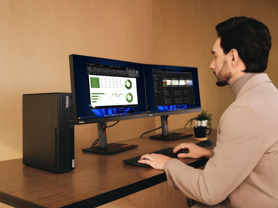 Progettati per il multitasking, il desktop tower ThinkCentre M75t Gen 5 e la versione small ThinkCentre M75s Gen 5 vantano un processore desktop AMD Ryzen PRO 8000 che aumenta la potenza delle prestazioni AI.