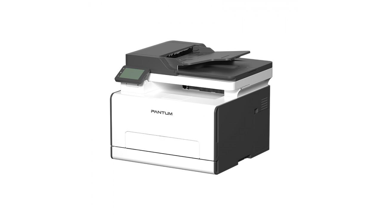 La soluzione Pantum adotta il classico chassis sovrastato dal modulo scanner completo di alimentatore automatico per i supporti cartacei. L’ingombro è contenuto nonostante si tratti di una soluzione single-pass in quadricromia.Il pannello di controllo si basa su un luminoso touchscreen a colori con una diagonale da 3,5 pollici affiancato da tre pulsanti, sempre a sfioramento, che consentono di andare velocemente alla schermata Home, di retrocedere di un livello e di aprire l’aiuto in linea. Il pannellino può essere anche ruotato in verticale per facilitare l’utilizzo dei menu.