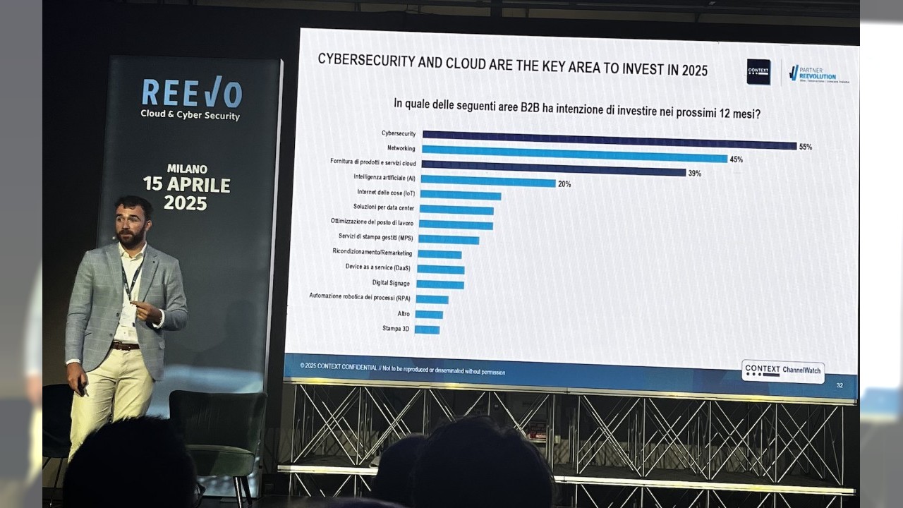 In Italia secondo Context nel mercato cybersecurity nei primi mesi del 2025 c’erano più di 4800 reseller attivi, con fatturato medio di 16mila euro: in un anno il numero è rimasto uguale, ma il fatturato è cresciuto del 32%. “Abbiamo fatto un sondaggio sui reseller italiani, ne risulta che nei prossimi 12 mesi in area b2b vogliono investire nell’ordine su cybersecurity, networking, cloud e AI”.