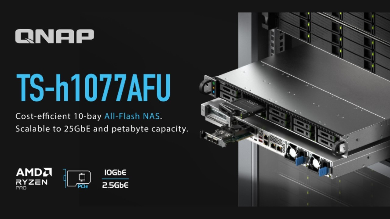 QNAP Systems ha presentato il TS-h1077AFU, un NAS all-flash compatto a 10 bay - già disponibile - basato su SSD SATA, progettato per le aziende che cercano uno storage veloce, affidabile e conveniente. Basato sul sistema operativo QuTS hero con ZFS, alimentato da processori della serie AMD Ryzen PRO 7000 e dotato di memoria ECC DDR5, il TS-h1077AFU offre prestazioni elevate, massima integrità dei dati e un elevato valore in fase di implementazione. Progettato con velocità, densità e affidabilità come principi fondamentali, il TS-h1077AFU è ideale per la virtualizzazione, workflow multimediali ad alta velocità, operazioni su database e consolidamento dei backup multi-sito.
