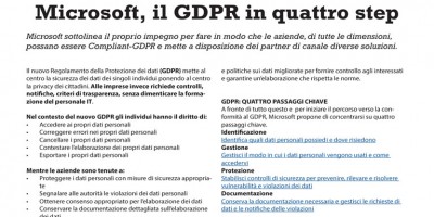 Microsoft sottolinea il proprio impegno per fare in modo che le aziende, di tutte le dimensioni, possano essere Compliant-GDPR e mette a disposizione dei partner di canale diverse soluzioni.