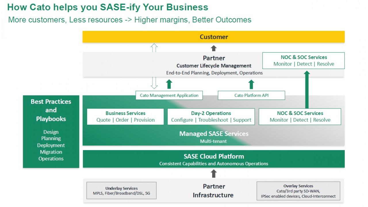 La piattaforma Cato è in grado di prendersi carico della complessità intera dell’infrastruttura di networking & security in toto, proponendo un servizio che si occupa di tutto ciò che afferisce la gestione di networking e security, in modo semplice: “Ci piace dire, un po’ provocando, che partendo dagli obiettivi di business, da subito, tempo zero, siamo in grado di fornire risultati di business. Il risultato di una connettività completamente manutenuta, altamente disponibile, scalabile e sicura per tutte le sedi, gli utenti e le applicazioni. Un modello a servizi apprezzato e conosciuto sicuramente nel canale".