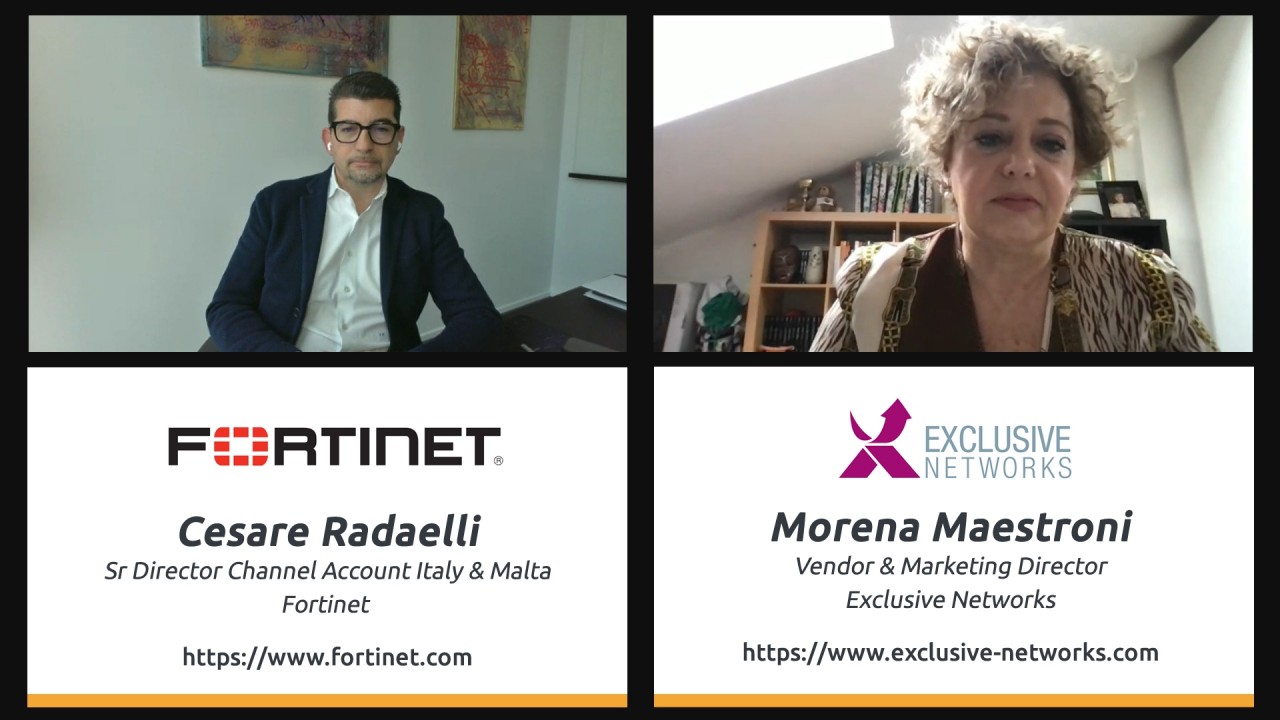 Cesare Radaelli di Fortinet, e Morena Maestroni di Exclusive Networks spiegano l'importanza di avvalersi di una piattaforma integrata di cybersecurity come Security Fabric per garantire ai contesti di lavoro ibrido visibilità, controllo, automazione e risposta. Importante il contributo del Vad all'ecosistema dei partner per aiutarli a portare sul mercato la proposizione Fortinet, di cui Exclusive è Master Distributor in Italia e il suo unico Authorized Training Center